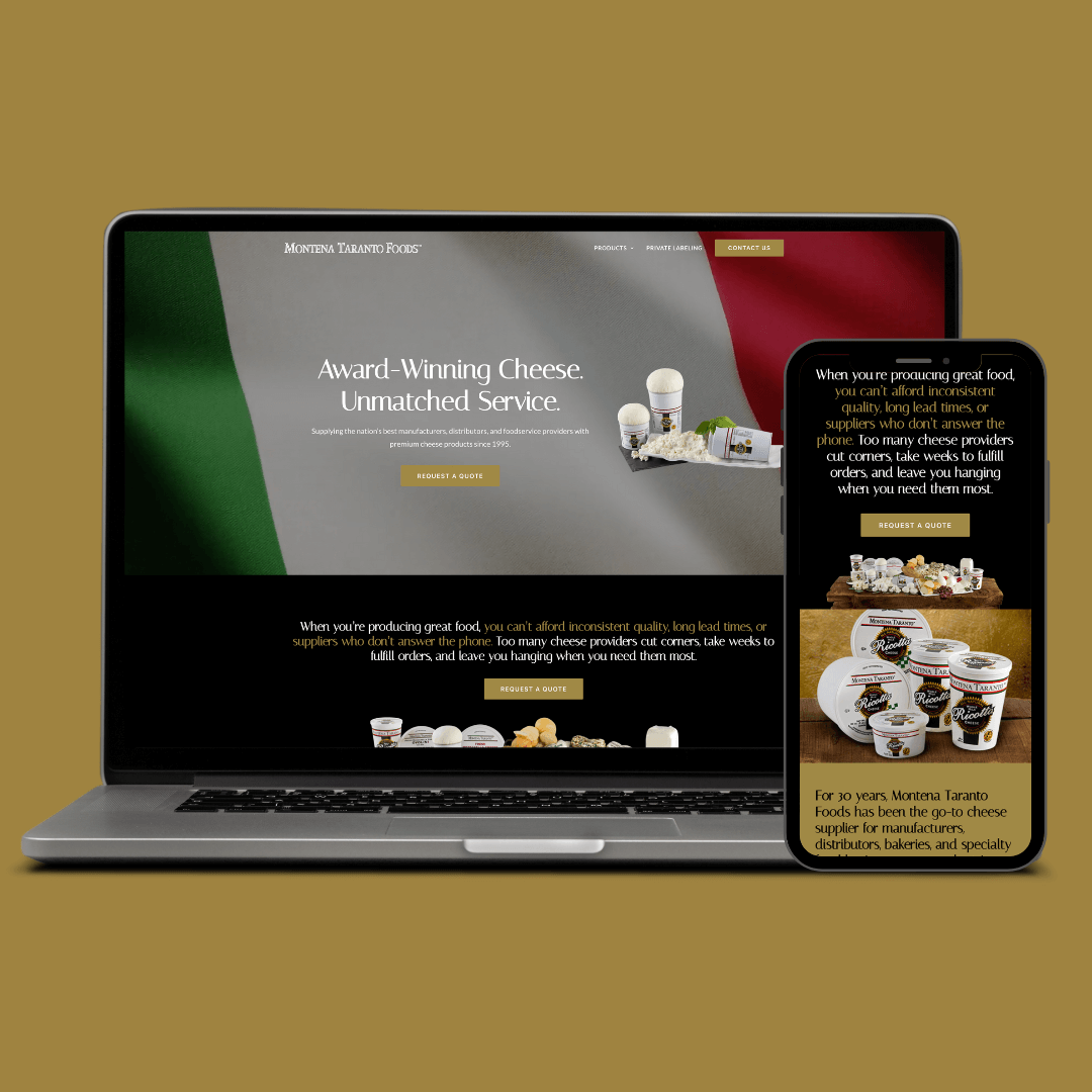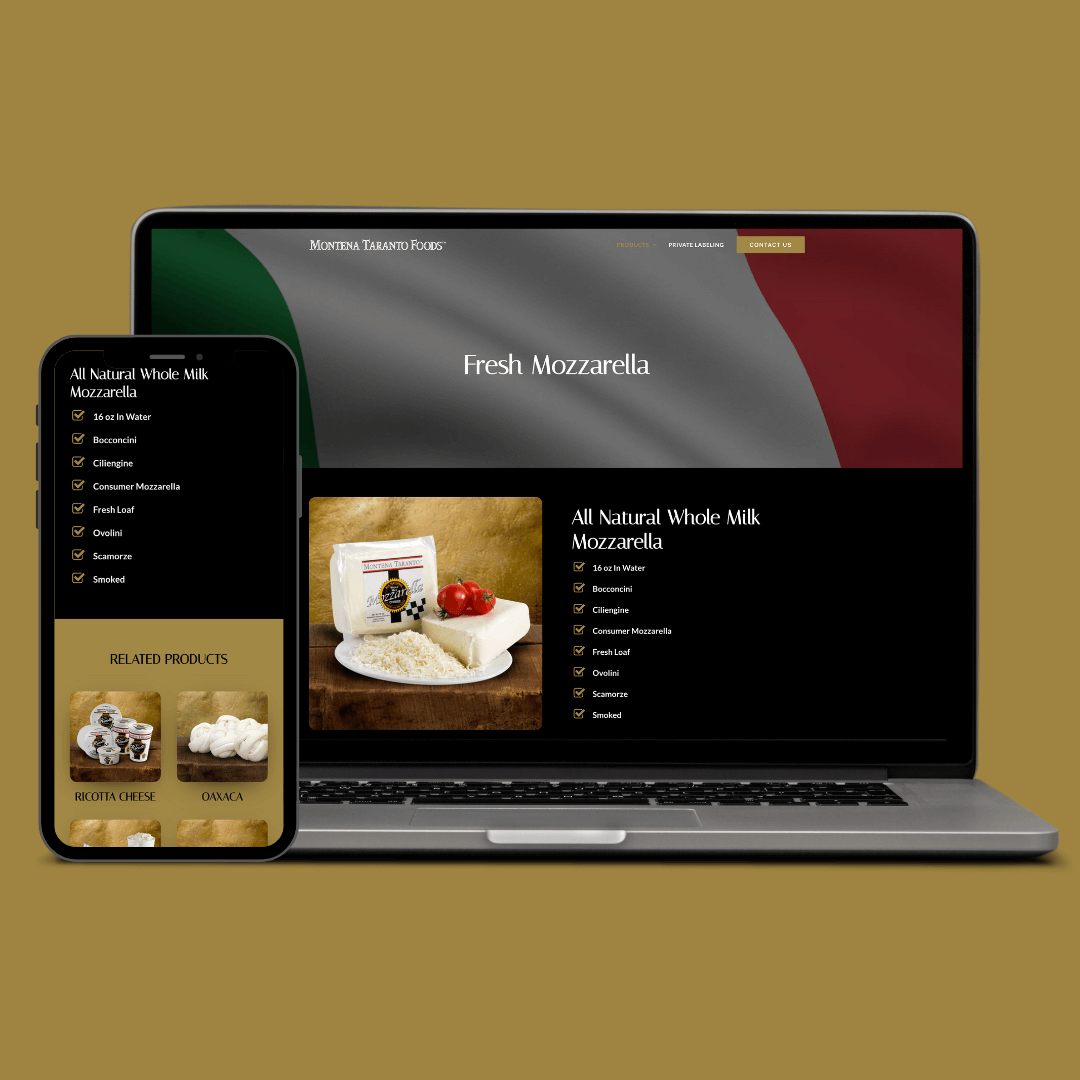 Eighty6 developed a sleek new website for Montena Taranto Foods that reflects the company’s long heritage of supplying premium, award-winning cheese and dairy products to manufacturers, distributors, and foodservice businesses across the country. The redesigned site highlights Montena Taranto’s commitment to quality and consistency while making it easier for customers to explore product offerings, learn about the company’s service-first approach, and connect for wholesale inquiries. By blending clear product storytelling with modern navigation and visuals, the new online presence showcases the brand’s deep roots since 1995 and supports its mission to serve specialty food partners with excellence.